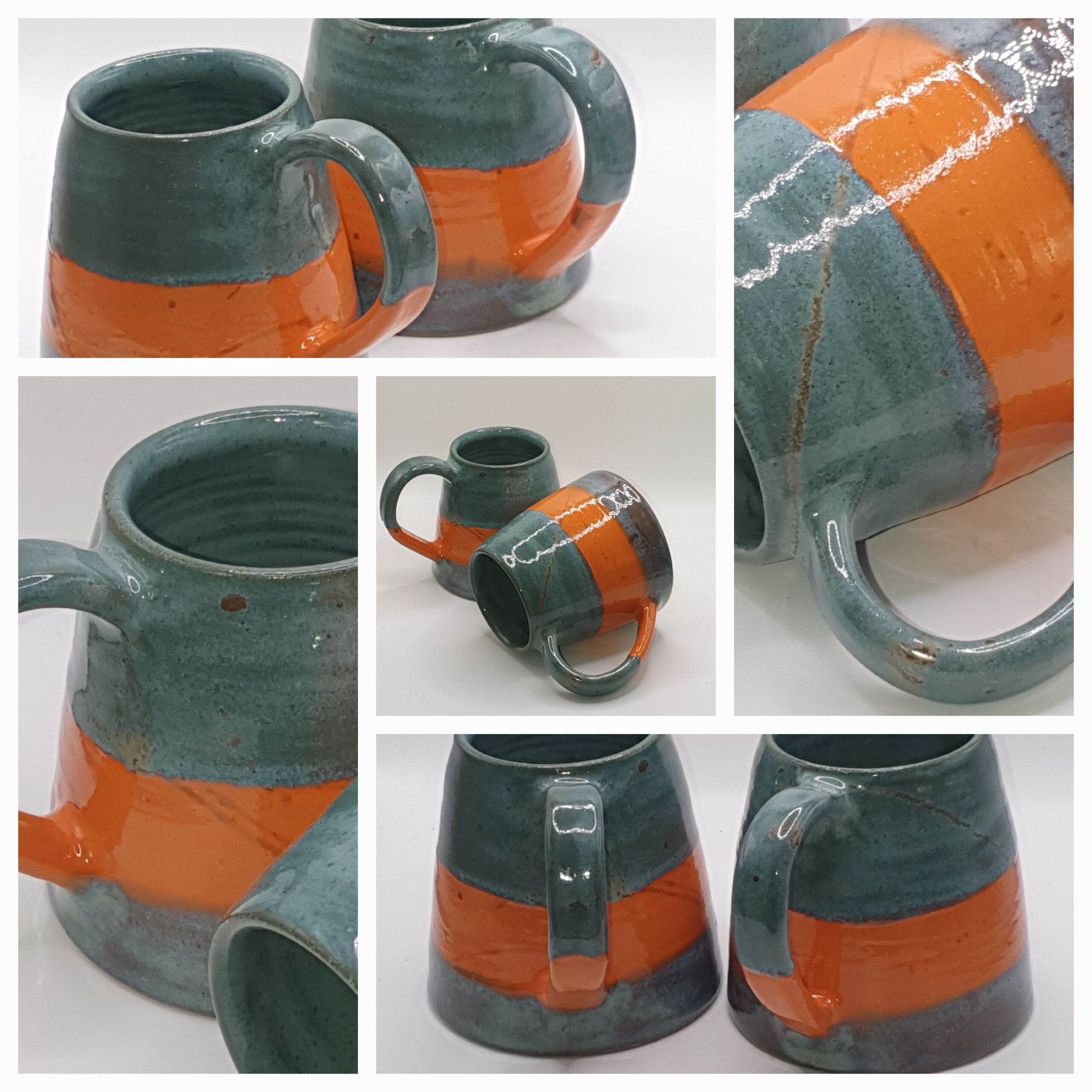 Glazed in Tourmaline, Textured Turquoise, Orange Gloss and Root Beer (Brown)