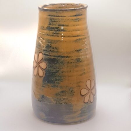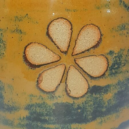Stencil petals resist the glaze to reveal the bare clay and add texture